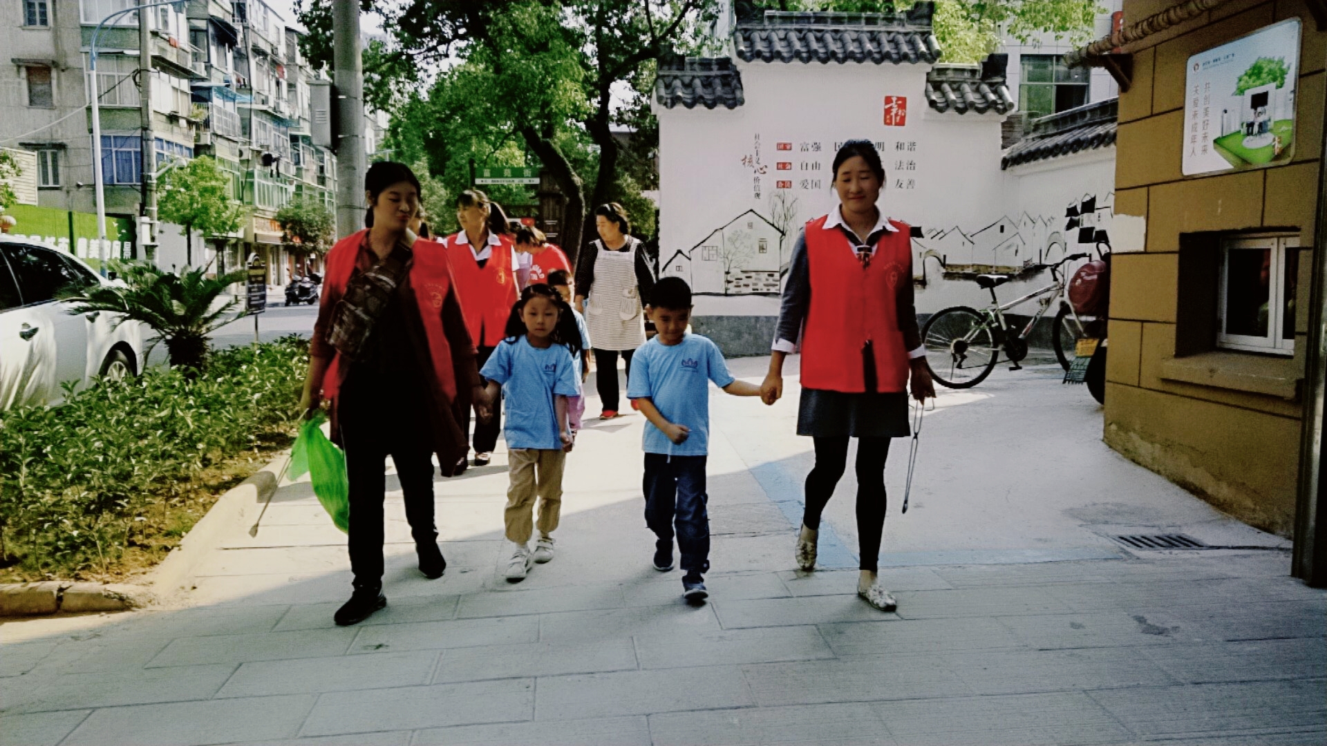 活動中,孩子們在老師們和社區志愿者阿姨們的帶領下,從幼兒園出發,隨手將路面上的垃圾撿起,還社區一個干凈整潔的面貌。一路上,孩子們都很積極,手中的袋子也在不知不覺中慢慢變得沉重。行動中的他們,洋溢著笑臉,是幸福的,也是快樂的!